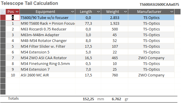 - BASIC configuration for TSO90/600 telescope with ZWO ASI2600 MC AIR camera
